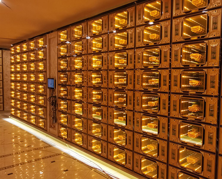 用于殯儀館、骨灰堂等骨灰存放場所,配合平板手機(jī)等硬件,完成一次富有儀式感及科技感的的室內(nèi)智能祭拜。